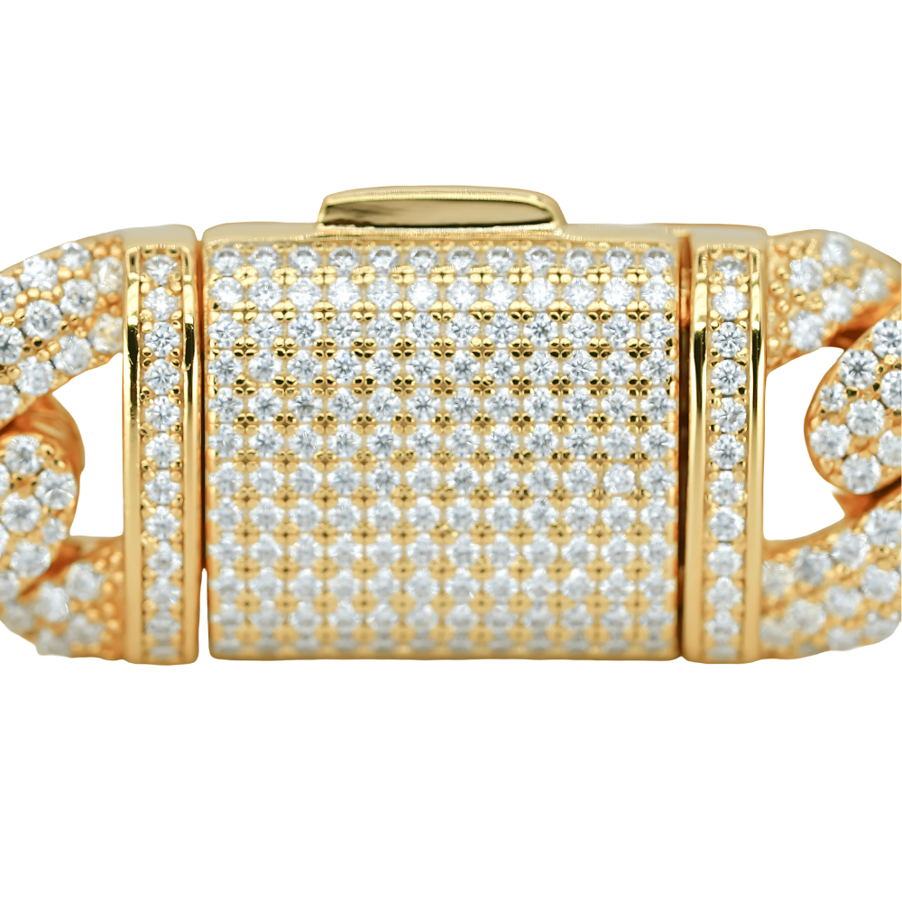 Each link is meticulously set with VVS Moissanite diamonds, delivering unmatched brilliance, fire, and clarity that rivals natural diamonds. The 14mm width provides a standout look, while the secure clasp ensures a comfortable and confident fit for everyday wear or special occasions.