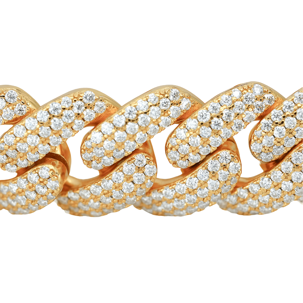 14mm Yellow Gold 3-Row Bubble Cuban Bracelet with VVS Moissanite Diamonds