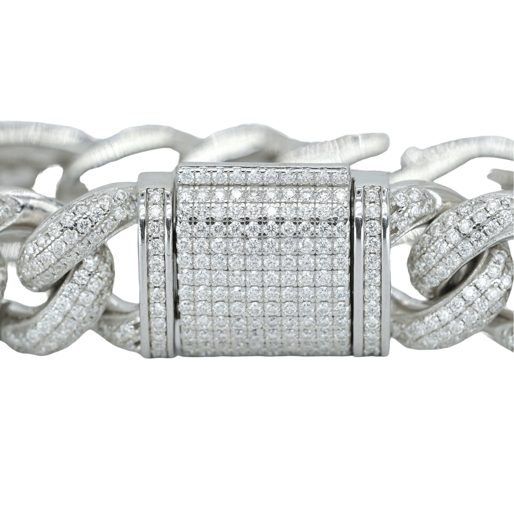 15mm White Gold Pig Snout Cuban Bracelet with VVS Moissanite Diamonds