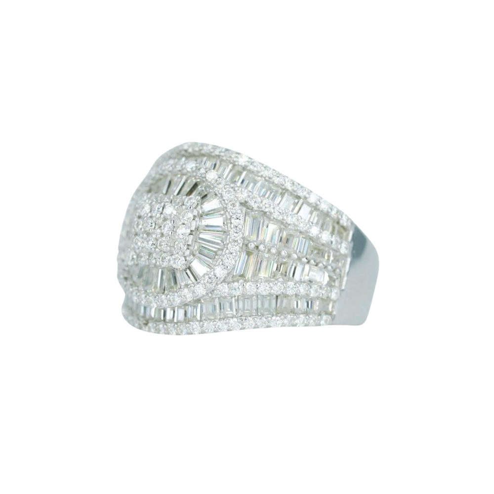 - Sizing: Available in US 4–13, with half sizes and resizing options. ✨ Dual-Cut Design: The baguette-cut stones add a sleek, geometric edge, while round-cut accents radiate classic luminosity—a harmonious contrast for modern elegance. 🌱 Ethical & Sustainable: Lab-created Moissanite ensures zero mining harm, making this ring as kind to the planet as it is stunning on your hand.