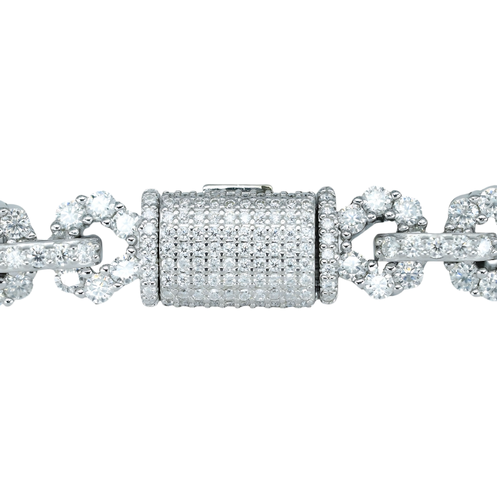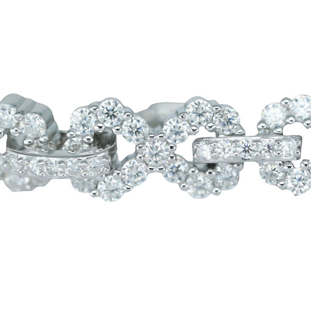 Each link is encrusted with VVS Moissanite diamonds, delivering unparalleled brilliance, fire, and clarity that rivals natural diamonds. The sleek and versatile design makes it perfect for everyday wear or special occasions, effortlessly elevating any look. The secure clasp ensures a comfortable and reliable fit, making this a must-have piece for those who appreciate the fine craftsmanship and undeniable shine.
